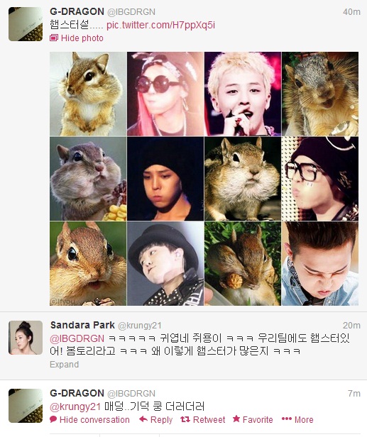 Twitter: Dara and GD Tweet About Cute Rodents While Taeyang Amps The Beat!