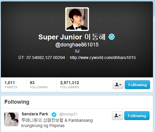 Twitter: Dara and Super Junior’s Donghae Follow Each Other on Twitter~!