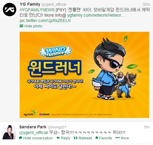 Twitter: Dara Thinks that “Gentleman” Psy’s Character in Windrunner is “Awesome-Cute!”