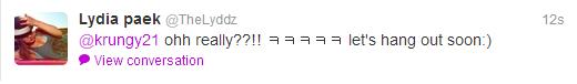Twitter: Dara (@krungy21) Asks Lydia Paek to Cover “In Or Out” – “I’ll teach you that song…”