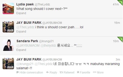 Twitter: Dara (@krungy21) to Jay Park (@JAYBUMAOM) – “Please wait in line…”