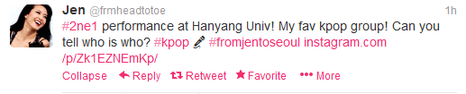 Twitter/Videos: Youtube make-up guru Jen shares her experience seeing 2NE1 @ Hanyang University