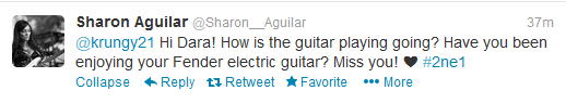 Twitter: Sharon Aguilar asks Dara ” Have you been enjoying your Fender electric guitar?”