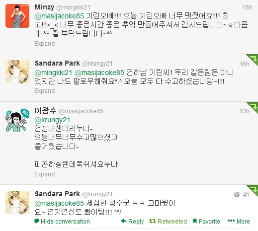 MINZY: Girin (Giraffe)-oppa!!! Girin-oppa was really awesome today!!! The best!!! >_< Thank you so much for the great time, it created such good memories~ ㅎ Please look after us well the next time also ~ ^^