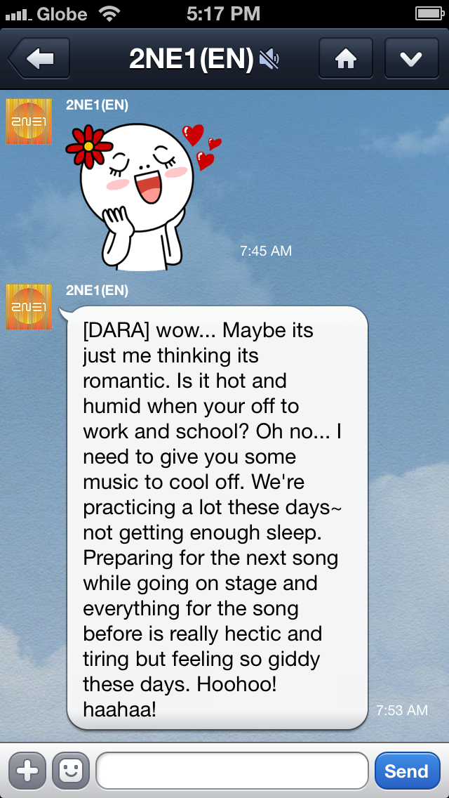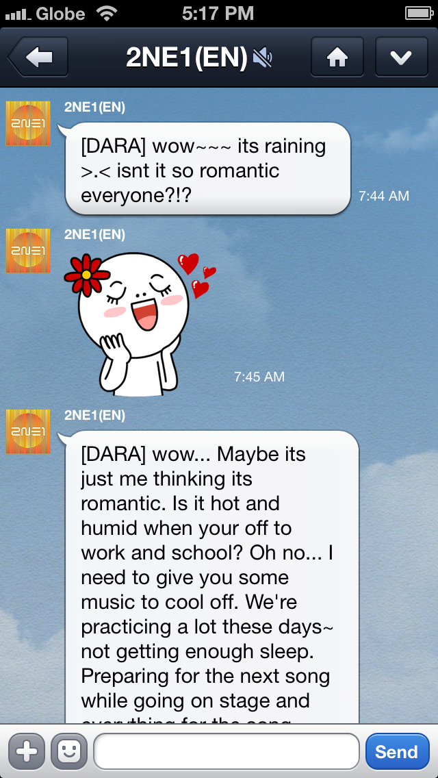 Haha, Dara always did think that the rain was romantic.. ^_^ And awww, Dara sure loves being busy, busy! 2NE1 missed performing as a group and it shows, really.. ^^