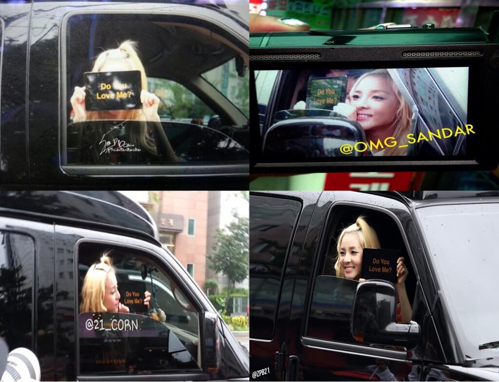 Dara so cute! She used the fantaken pics of the Blackjacks and Daralings who were outside Inkigayo yesterday! ^^