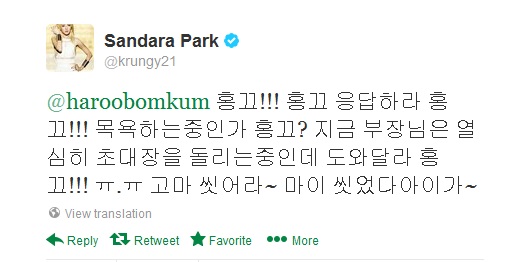 Dara : “Do the car washing later and enjoy now!!! Hongkku (your) swim suit is pretty ㅎㅎㅎ”