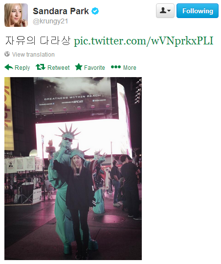 How cute is it that Dara is doing all these touristy stuff in New York? ^_^ She is all kinds of cute! Our bare-faced, casual Unnie is having so much fun in New York! ❤