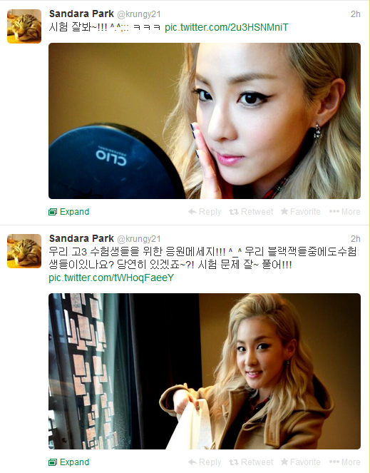 Twitter: Dara (@krungy21) Encourages High School Students Taking exams: “Do well on your exams~!”