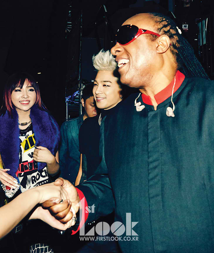 Stevie Wonder with Big Bang’s Taeyang and 2NE1’s Minzy.
