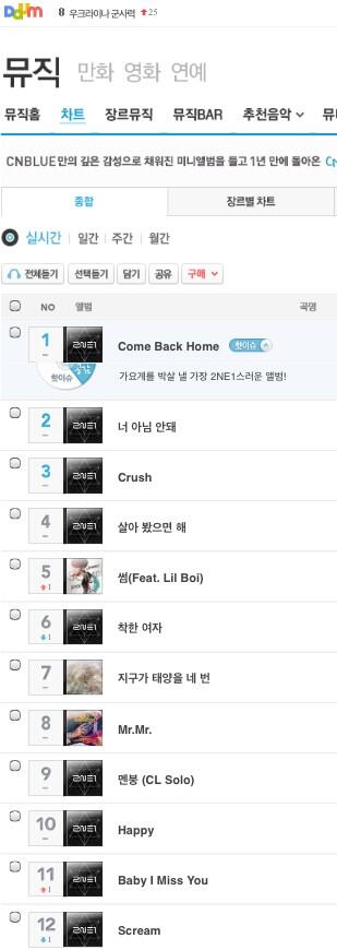 As for their individual songs in the album, as of 1:30PM, KST, today, 2NE1’s “Come Back Home” is still at number 1 in Instiz Chart!