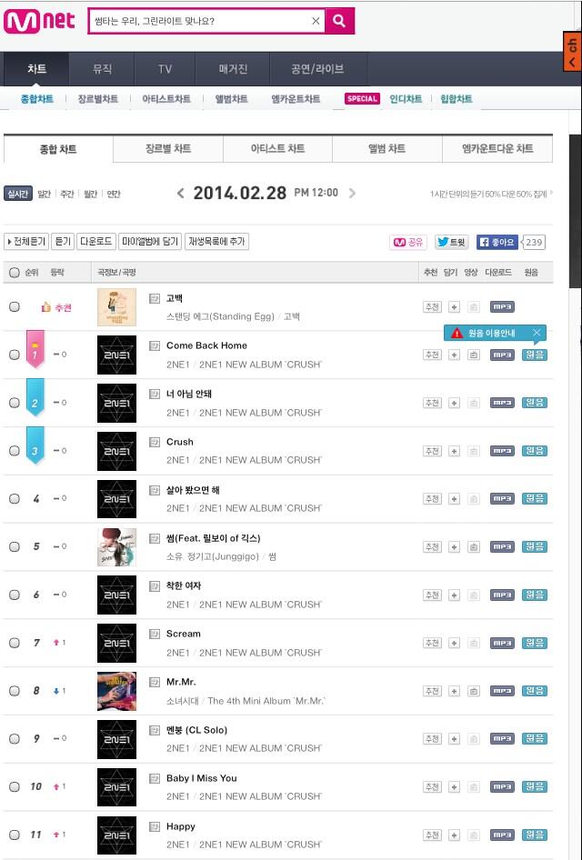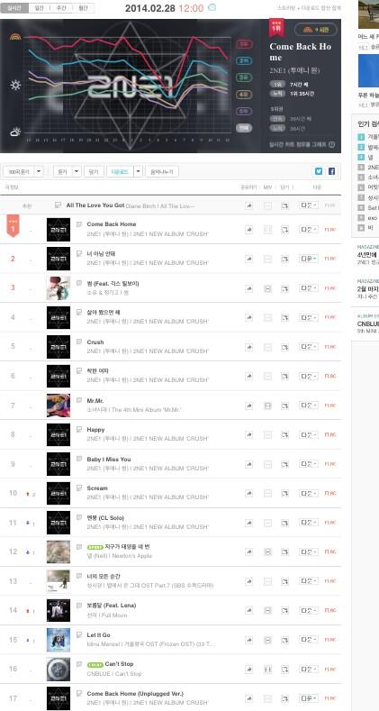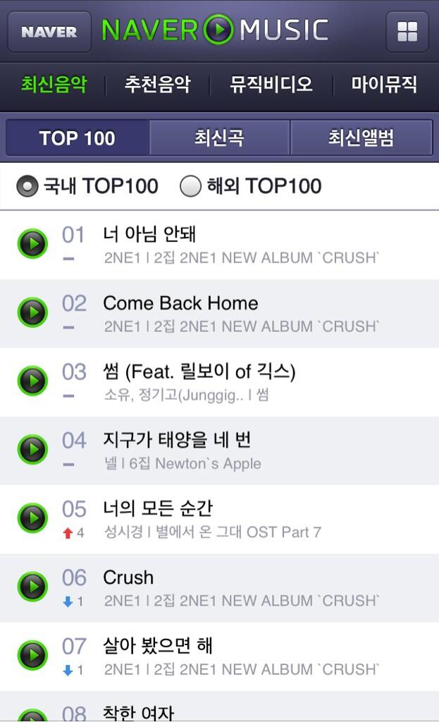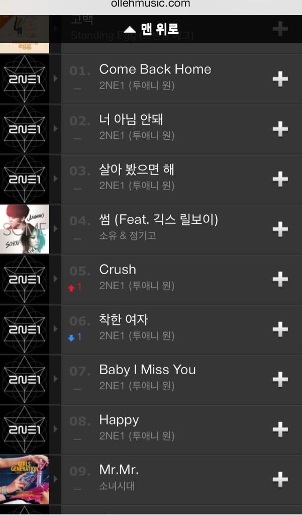 2NE1’s Crush is doing so well in the charts! So so so proud of the girls! Looking forward to it staying longer on the charts!