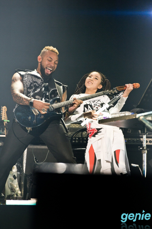 Sandara Park played the guitar on-stage for the concert, after several months of playing the instrument. She showed her capability at a high level when she played as accompaniment for the first time in public. She was concentrating so hard while accompanying the song that when it ended, a visible expression of relief crossed her face. Her pleased expression said, “The song finally ended and I didn’t make a mistake,” her face was really cute! Even while showing a sexy appeal, Sandara Park still manages to show her innocent charm.
