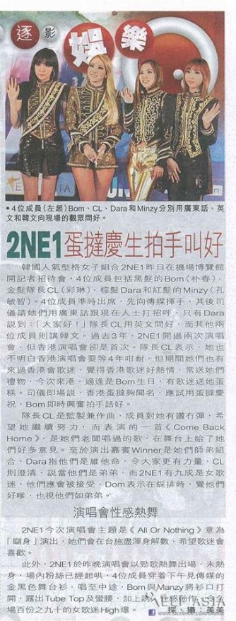 Photos: Scans of News Paper Pages Featuring 2NE1’s “All Or Nothing” World Tour Concert in Hong Kong