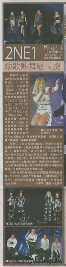 Photos: Scans of News Paper Pages Featuring 2NE1’s “All Or Nothing” World Tour Concert in Hong Kong