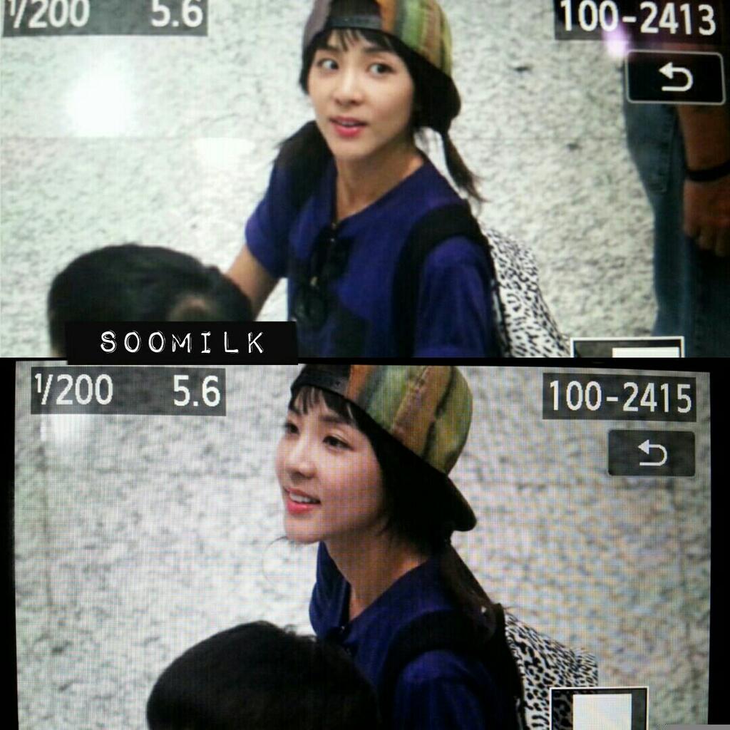 Kid Dara! ❤ One fan gave her a monopod with bluetooth remote control and got to talk to her for a bit too. ^^ Fans at the airport said that Dara is very petite, making it hard to look for her in the midst of people towering over her. XD
