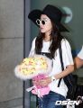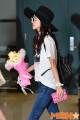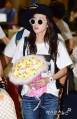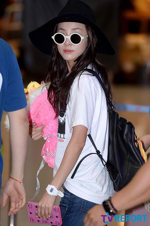 Pretty Dara is back in Korea! ❤ Press remarked about how, even though she’s wearing just jeans and a shirt, she is still eye-catching! They remarked on her cute chick bouquet too.. ^^ The chick bouquet was given to her by our dear admin, Chelle, in Singapore! ^_^ Press says that her fedora hat is her fashion “point” this time around. ^^