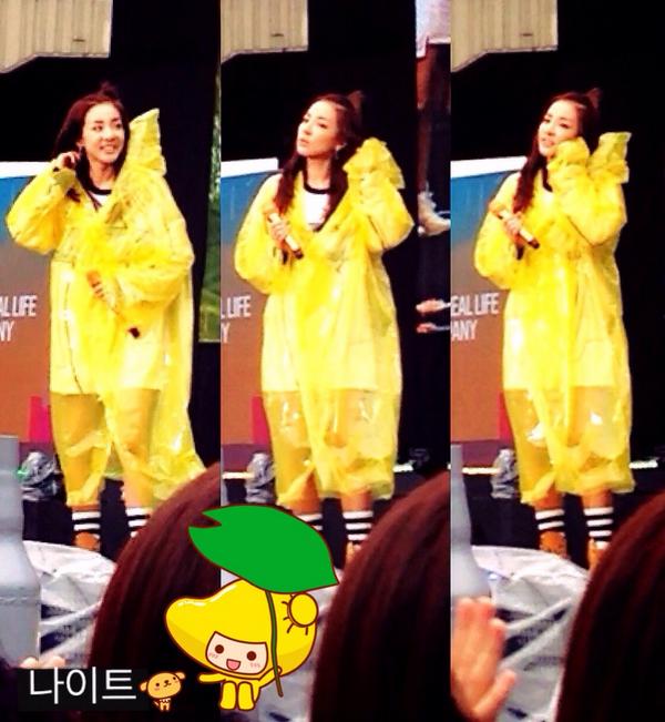 Pretty, pretty Dara! It must’ve been raining in Seoul, she makes the rain coat look good though, kekeke!