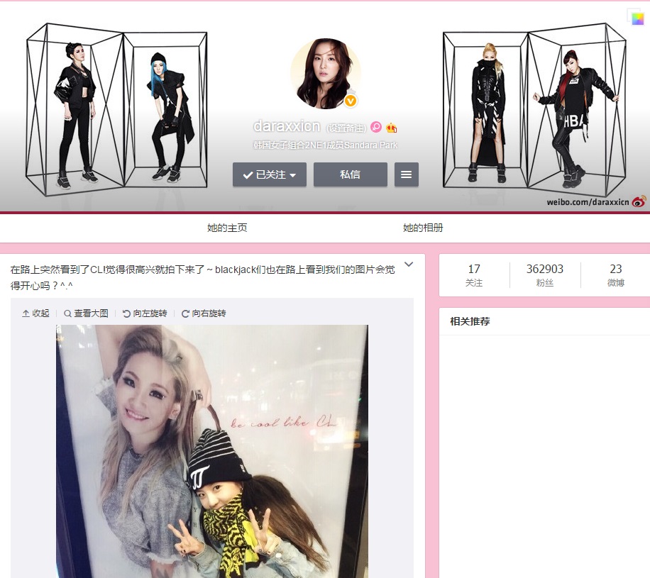 Dara, the president of CL’s fanclub~! Keke! And of course Dara, we Blackjacks would be happy and proud to see you on the street! I remember when we went to Singapore, we saw 2NE1 in an Adidas store. We really went in to take pictures, though we were shy. Kekeke! XD And don’t you just find her tags funny? XD