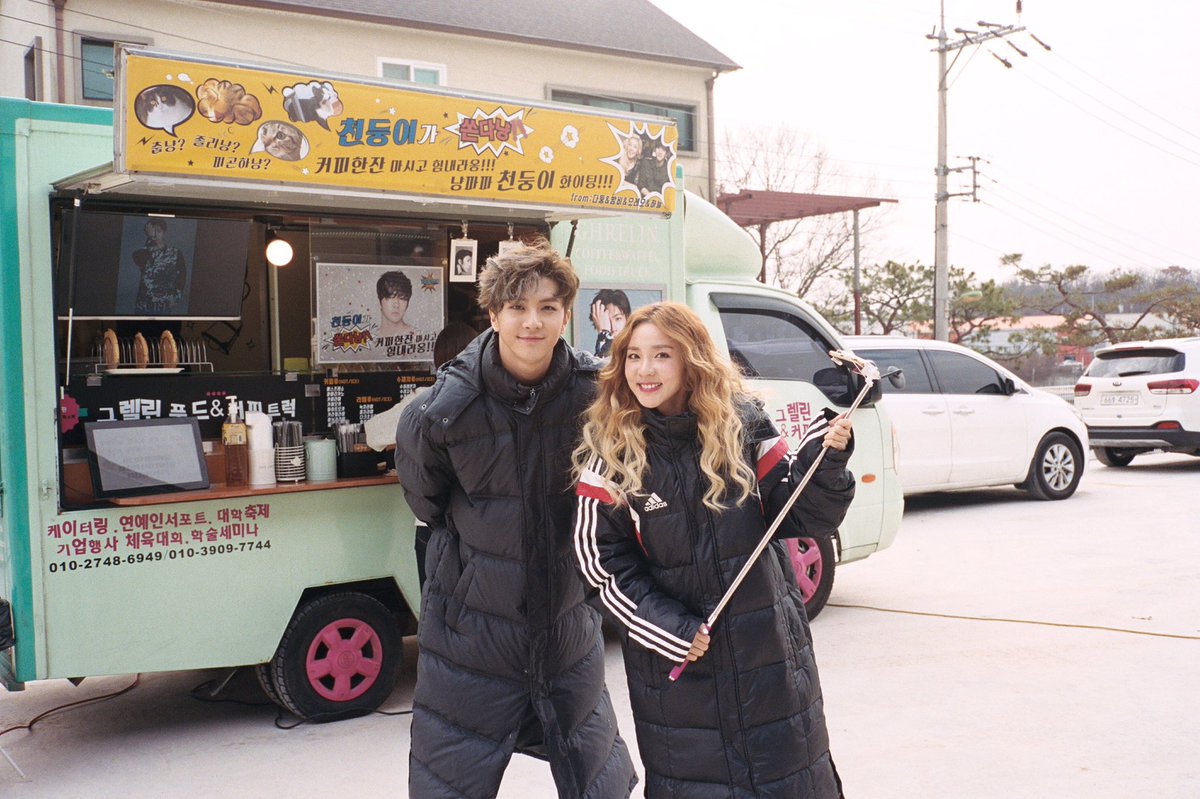 Dara shared a gorgeous solo photo of her during the MV filming of Thunder’s solo track, Sign, as well as an adorable photo of Park Siblings. Fighting!