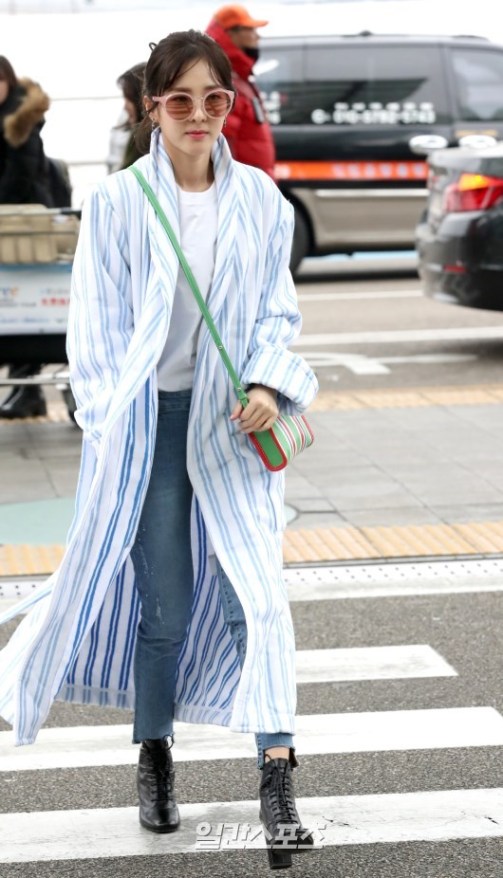 Photos: 170301 Press Pictures of Fresh, Dark-Haired Sandara Park at Incheon Airport Headed to Bangkok, Thailand