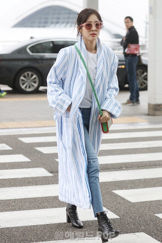 Photos: 170301 Press Pictures of Fresh, Dark-Haired Sandara Park at Incheon Airport Headed to Bangkok, Thailand