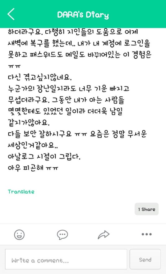 Line Diary: Dara Detailed of How She Freaked Out Finding her Instagram Account has been Hacked