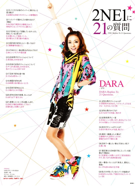 Please note that these have been translated from Korean, not directly from Japanese, so there might be slight differences from translations. ^_^ I love how blunt and fun Dara’s answers ware. ^_^