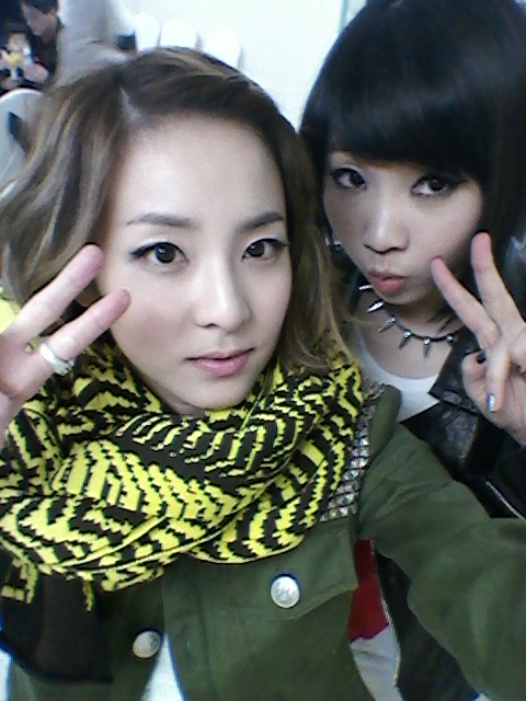 On February 20th, she wrote, “‘Dog Poop’ visited 2NE1’s waiting room!“ ‘Dog Poop,’ not to be confused with an insult, is an affectionate childhood nickname she normally calls Thunder. Dara continued, “When we sometimes have broadcasts on the same day, I’d always go to Dog Poop’s waiting room. But!! For the first time since our debut! Our shy ‘Dog Poop’ visited our waiting room!”
