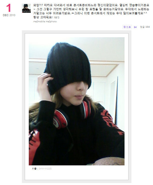 We’re working hard for the concert!!! Who is this!?^^ You’ll see this Saturday!! I hope lots and lots of fans make it to the concert~ Ah, my head ㅋㅋ