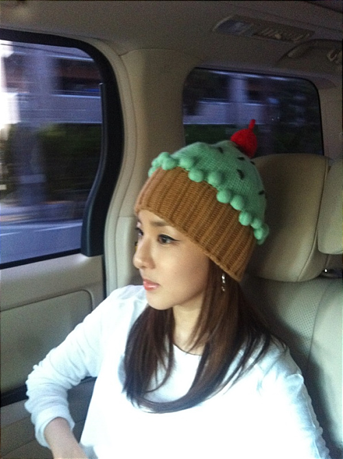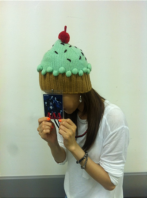 So right after that, the MBLAQ members started asking where noona was.. I was feeling shy, so I was just standing there.. But then I had a sudden flash of courage, and raised my hands! Up! +.+ I made a heart above my head to greet them! But the camera was filming me from behind, so they only caught the back of my head…. The cupcake hat was all over the big screen.._-_;; Ackkk ke ke
