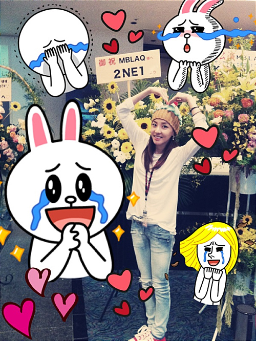 Awww! It seems Dara made super special memories from attending MBLAQ’s concert in Yokohama, Japan. First, she showed off the flower wreath that 2NE1 gave MBLAQ for their Yokohama concert. Then, she got really touched when MBLAQ gave her her very own special waiting room. During the concert, Thunder even told the crowd that his sister was present which prompted the members of MBLAQ to look for her. She couldn’t help herself but post 2 me2days of her giving the heart sign because of the very special memories she had during the day.