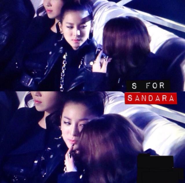 Dara covering Bom after she did her tumbling and accidentally showed her bra.. XD