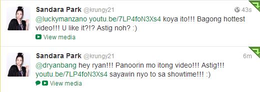 Dara then starts tweeting the Music Video to her Celebrity Friends from the Philippines!