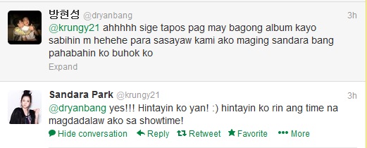 RYAN: Ahhhh, okay, after you guys have a new album, tell me He he he So that when we dance it (the bew sing), I can become Sandara Bang, I’ll grow my hair long