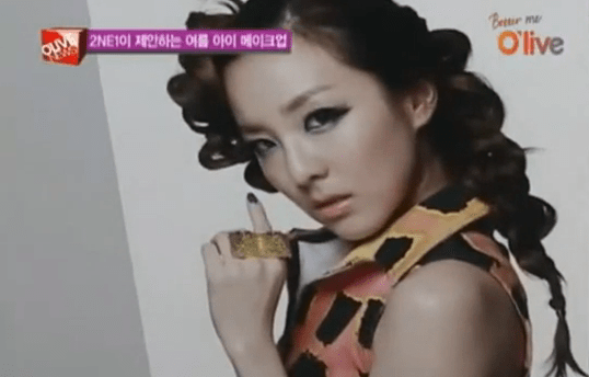 Dara Park, on the live broadcast of KBSTV2 “Entertainment Live Weekly,” appeared with the rest of the 2NE1 members, showing an interview and behind-the-scenes for their CF of cosmetics brand, Etude.