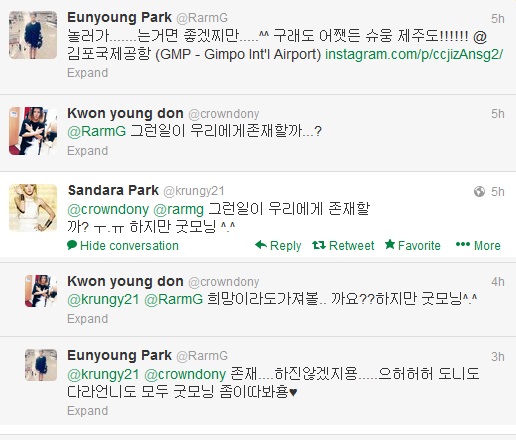 Twitter: Eunyoung Greets Dara a “Happy New Year” and She Replies with a Fun “Han Sal” Drawing