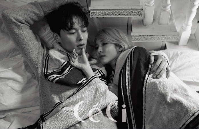 For this Valentine’s Day pictorial, showing “moments of love between a man and a woman,” an anthology photoshoot format was created involving three men and a woman. Sandara Park, who has showcased her fashionable and youthful appearance in the past, will show a different kind of charm through her feminine appeal; she also showed off a powerful kind of chemistry with three male models Byeon Woo Seok, Jang Kiyong, Jand Joo Woo Jae, featuring various couple shoots and concepts.