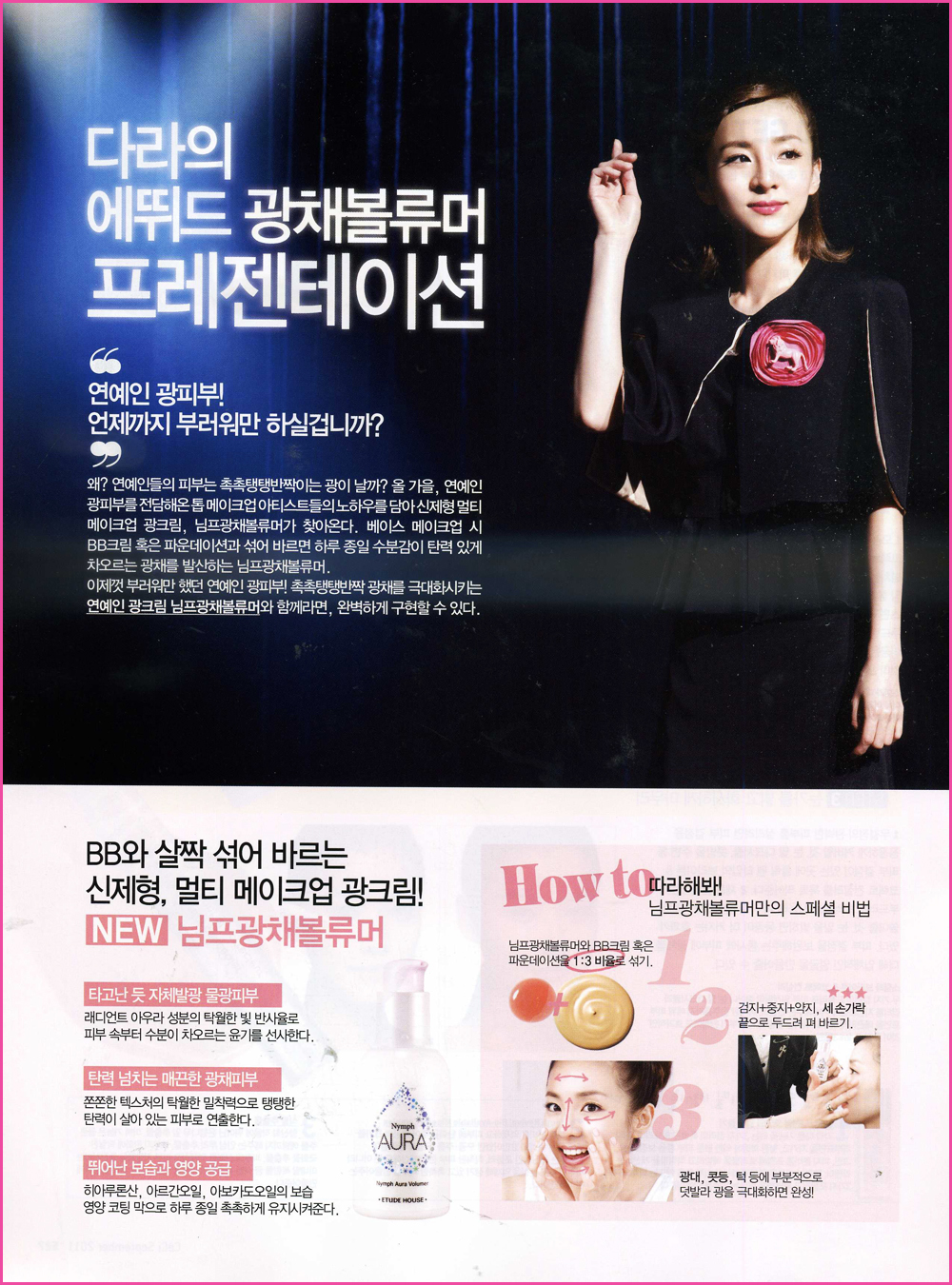 Allure, Ceci, Elle Girl, High Cut. Nylon, Shure, Beauty Club, Beauty Life, Breeze, Elle, Singles, Travelers, Vogue Girl, Women Korea, and Women Sense. Those and more, are the Korean magazines where Dara’s Nymph Aloha Volumer ads and features, were printed on.