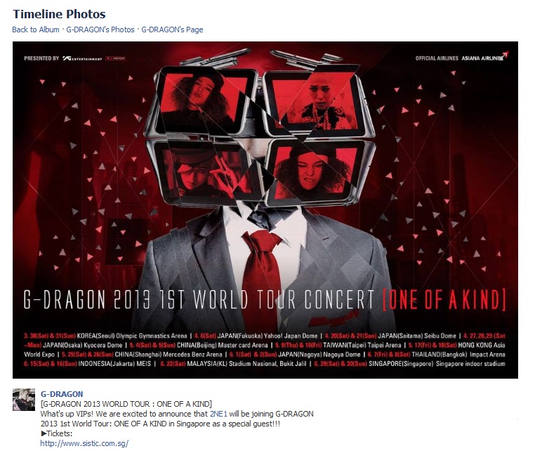 2NE1 are the guest performers for GD’s One Of A Kind concert in Singapore on the 29th and 30th! OMG! Wahhh, Singapore Blackjacks, so lucky! ^^