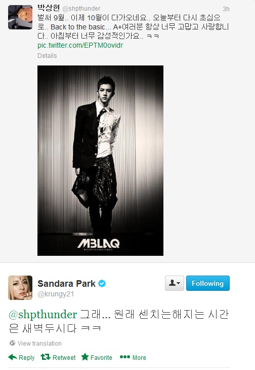 THUNDER: It’s already September.. October will be approaching next.. Starting today, we’re going back to the original.. Back to the basic… I will always be very grateful to A+, I love you all.. I’m so sentimental this morning.. ㅋㅋ