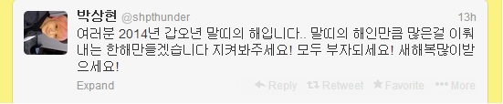 Chundoongie with the Horse zodiac~ In 2014, be happy~ healthy~ and you’ll also be having a very cool, busy year!! I’ll cheer you!! I hope you get a lot of blessings next year~ get it!! Get all!!