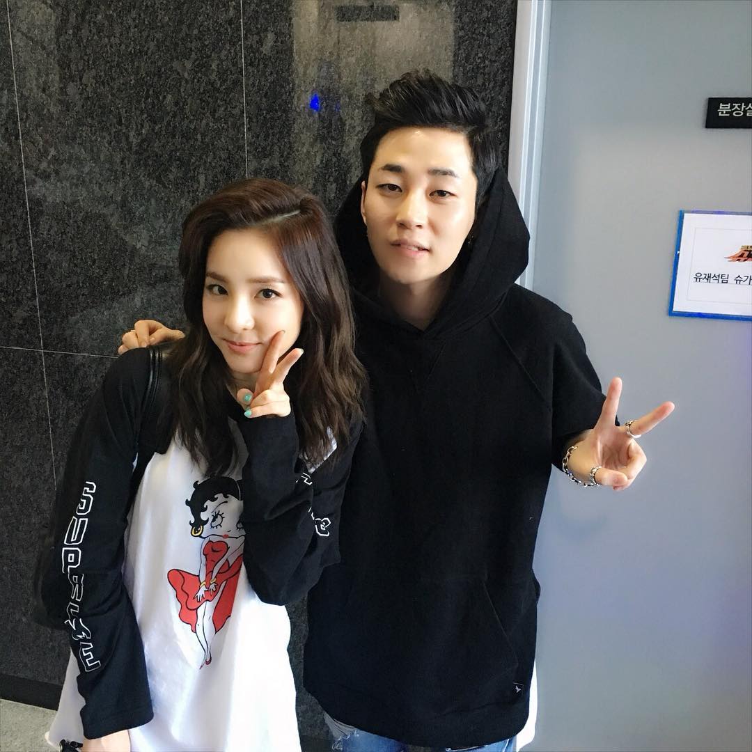 Twitter/Instagram: MC Maknae Dara with her Sunbaenims Yoo Jaesuk, Yoo Heeyeol and Kim Eana