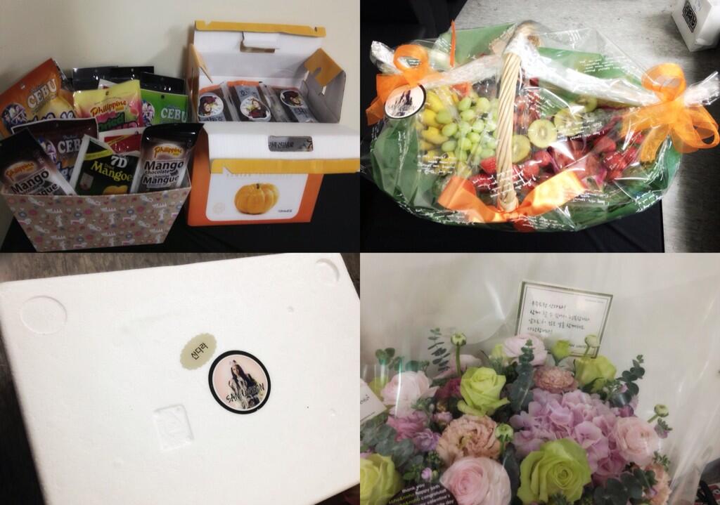Just arrived at the concert hall~ And the feeling that we’re having an actual concert now hit me! The fans selected the things I liked and sent a lot of food and flowers ㅠ.ㅠ Thank you, San Union~ ^.^ Today the members and staff’s spirits will be high high!!!
