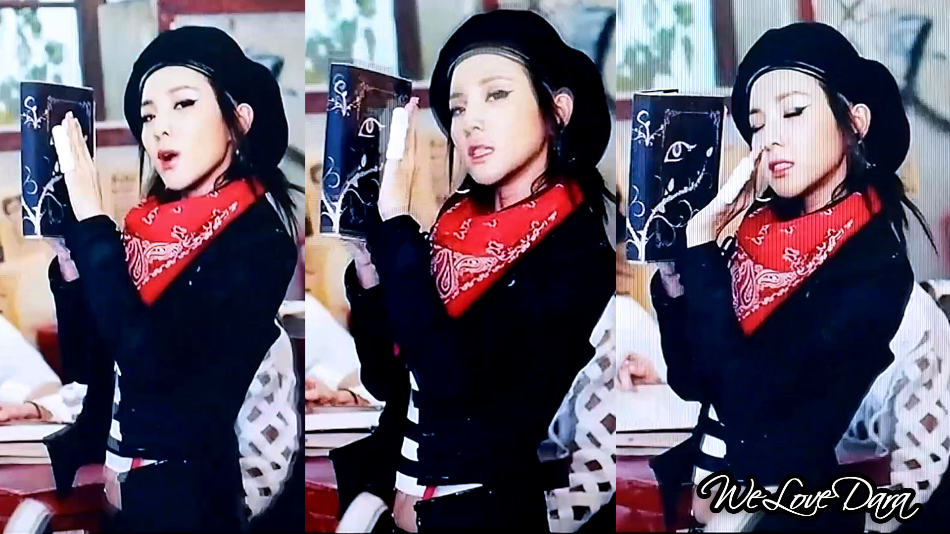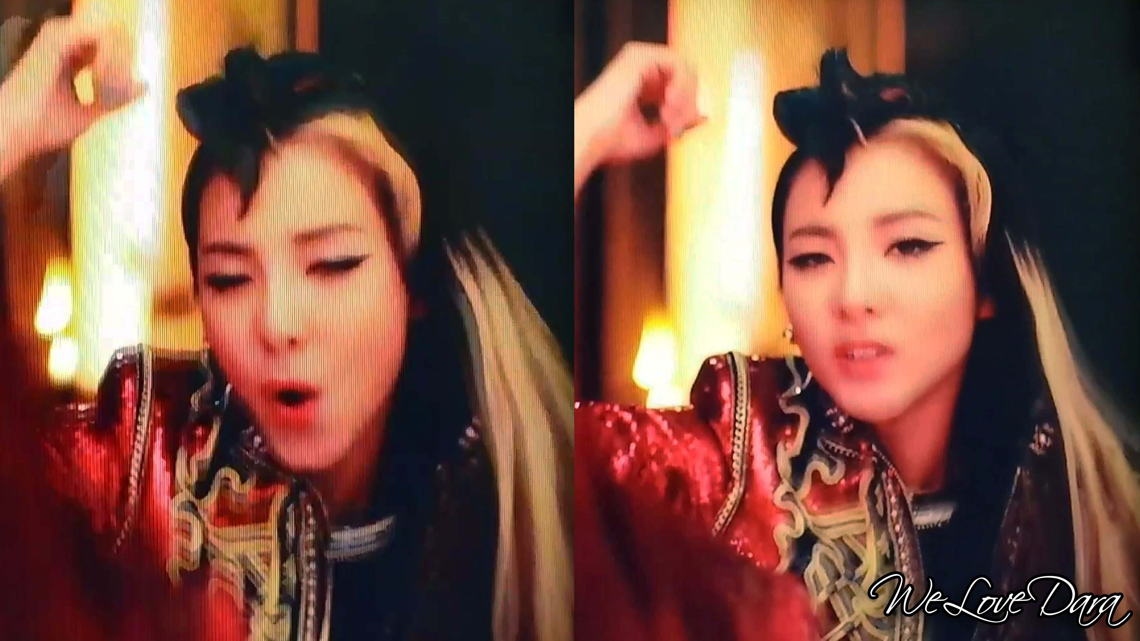 Dara is seriously so so so pretty in this video! She works the black wig with the full bangs! She looks so pretty! ❤ And cat eye make-up works really well with her too! ❤ And of course, she’s like a badass student in the classroom in one of the scenes, and an alluring Egyptian goddess in another.. ❤ Wah! ❤