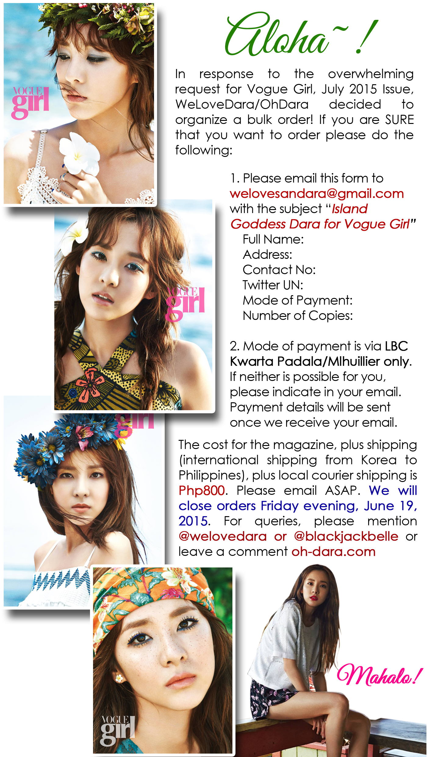 Admin Post: Details for Bulk Orders for Vogue Girl, July 2015 Issue Featuring Island Goddess Dara