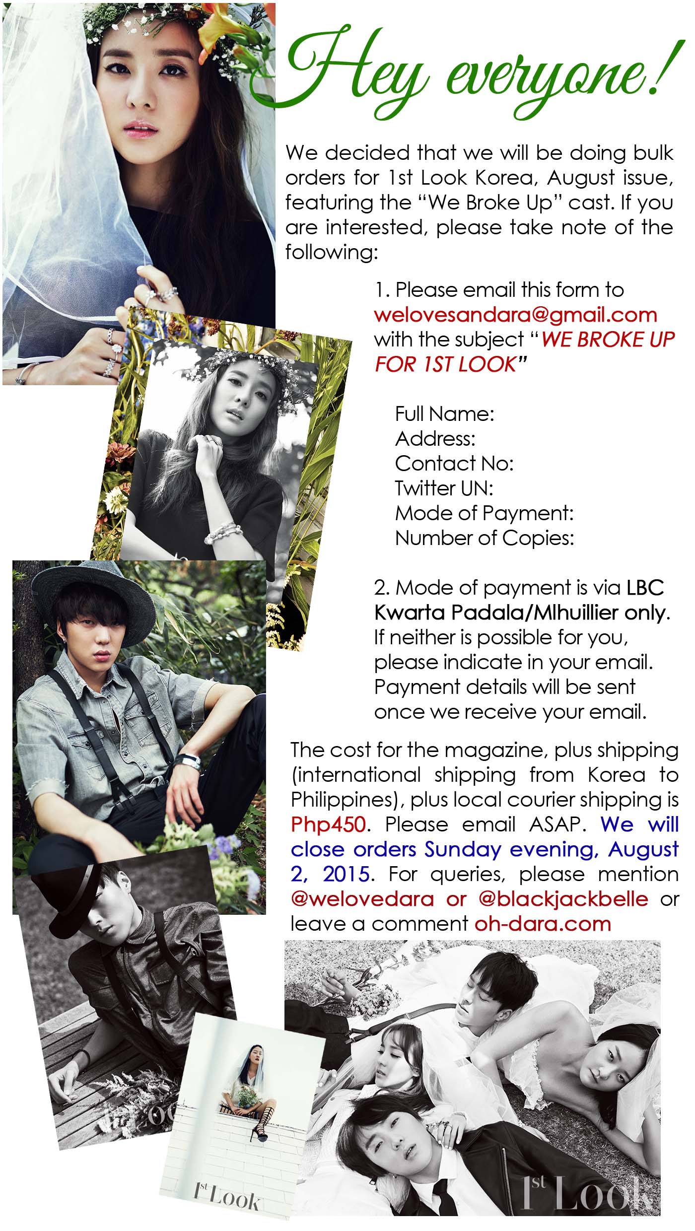 Admin Post: WeLoveDara/OhDara Bulk Orders for 1st Look Magazine Featuring “We Broke Up” Cast ~ “If We Are”