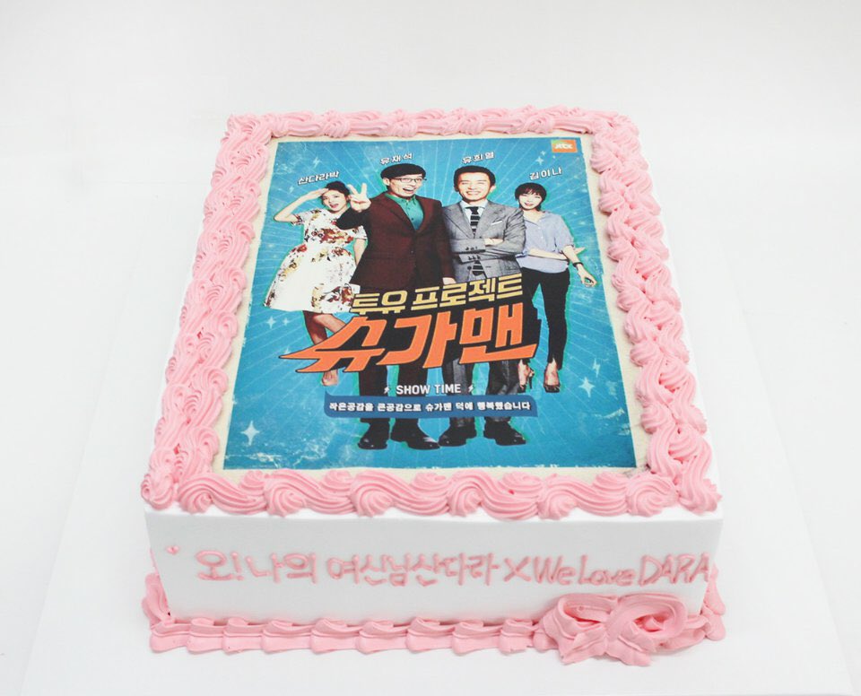 OMG admins planned on handing the cake and  bouquet to Dara before the recording, but she was bare-faced and snuck in through the parking lot.. XD We’re so happy though that she enjoyed the bouquet and the cake! ❤ This was our simple way to cheer her up during the last filming for Sugar Man! ❤